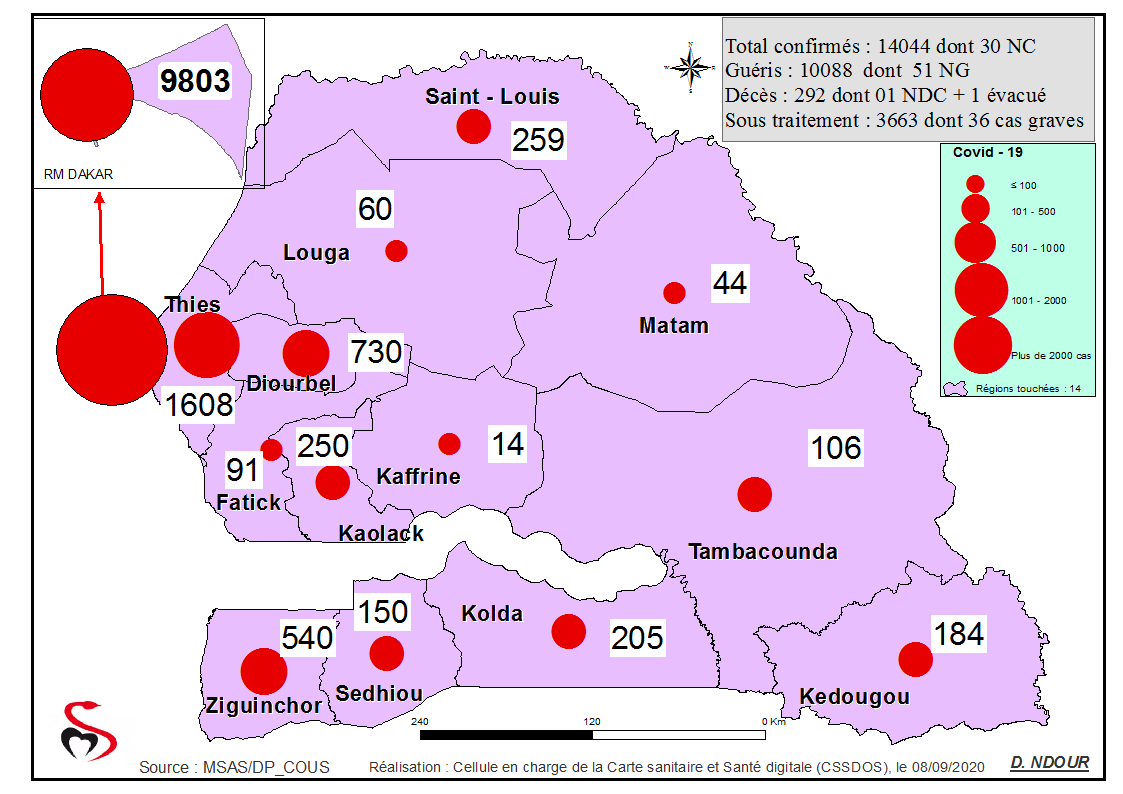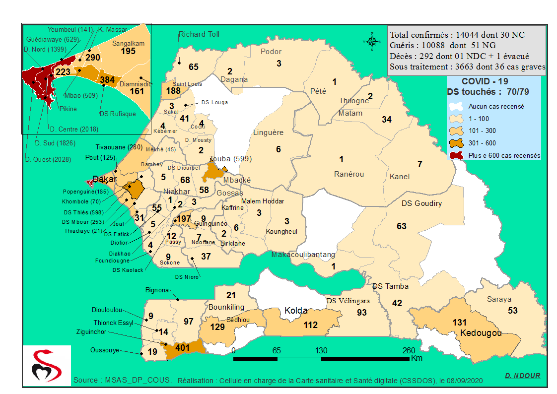 Coronavirus : Répartition par Région et District des cas de contamination à la Covid-19 au Sénégal du 08 septembre 2020