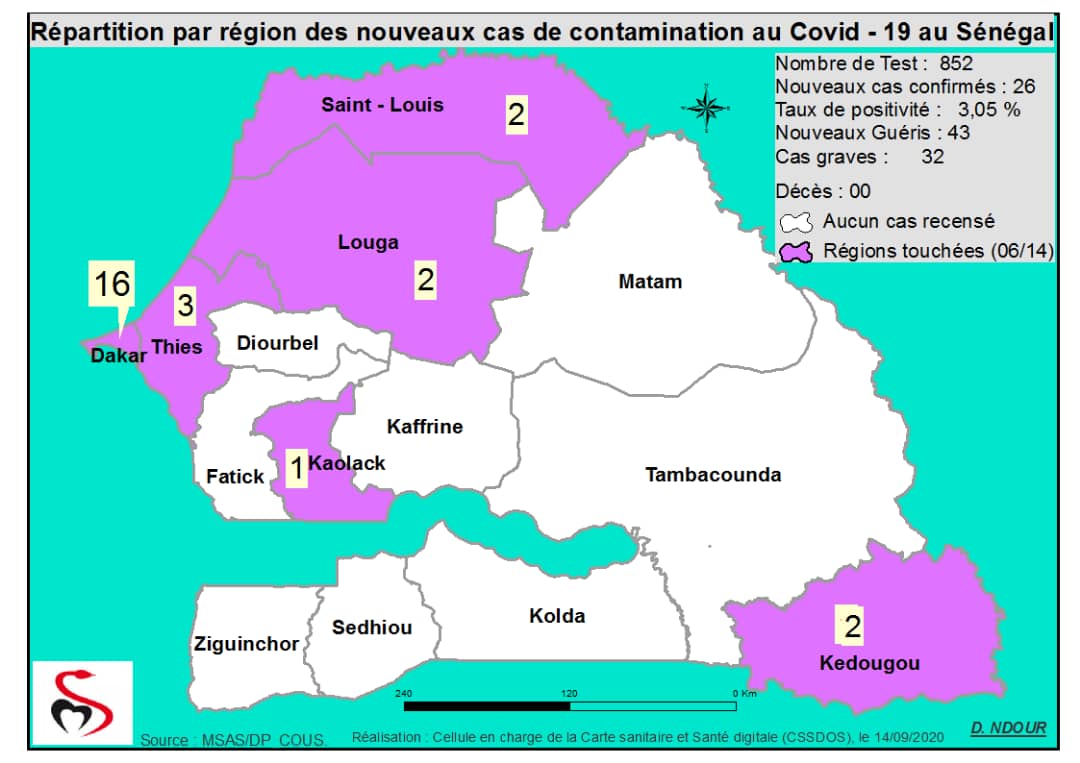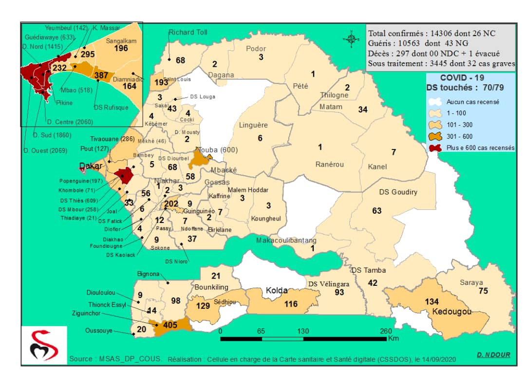 Accueil / Mediathèque / Phototheques / Coronavirus : Répartition par Région et District des cas de contamination à la Covid-19 au Sénégal du 14 septembre 2020