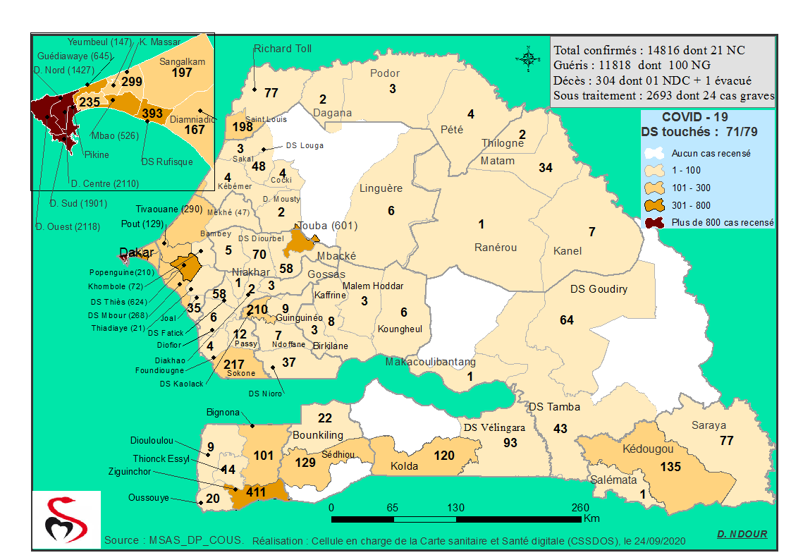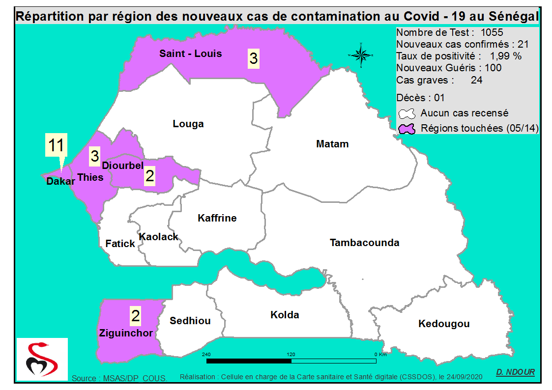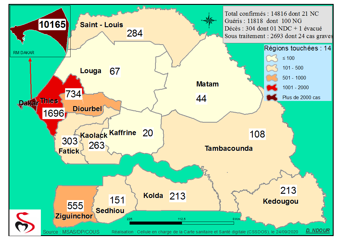 Coronavirus : Répartition par Région et District des cas de contamination à la Covid-19 au Sénégal du 24 septembre 2020