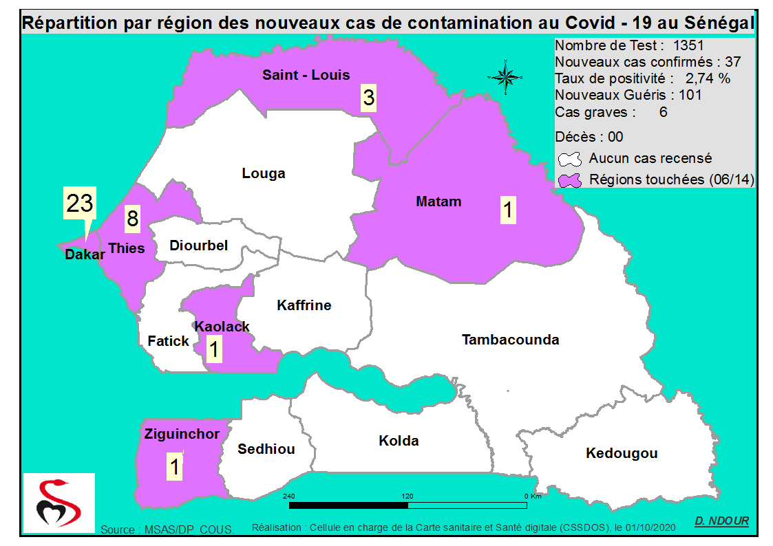Coronavirus : Répartition par Région et District des cas de contamination à la Covid-19 au Sénégal du 01 Octobre 2020