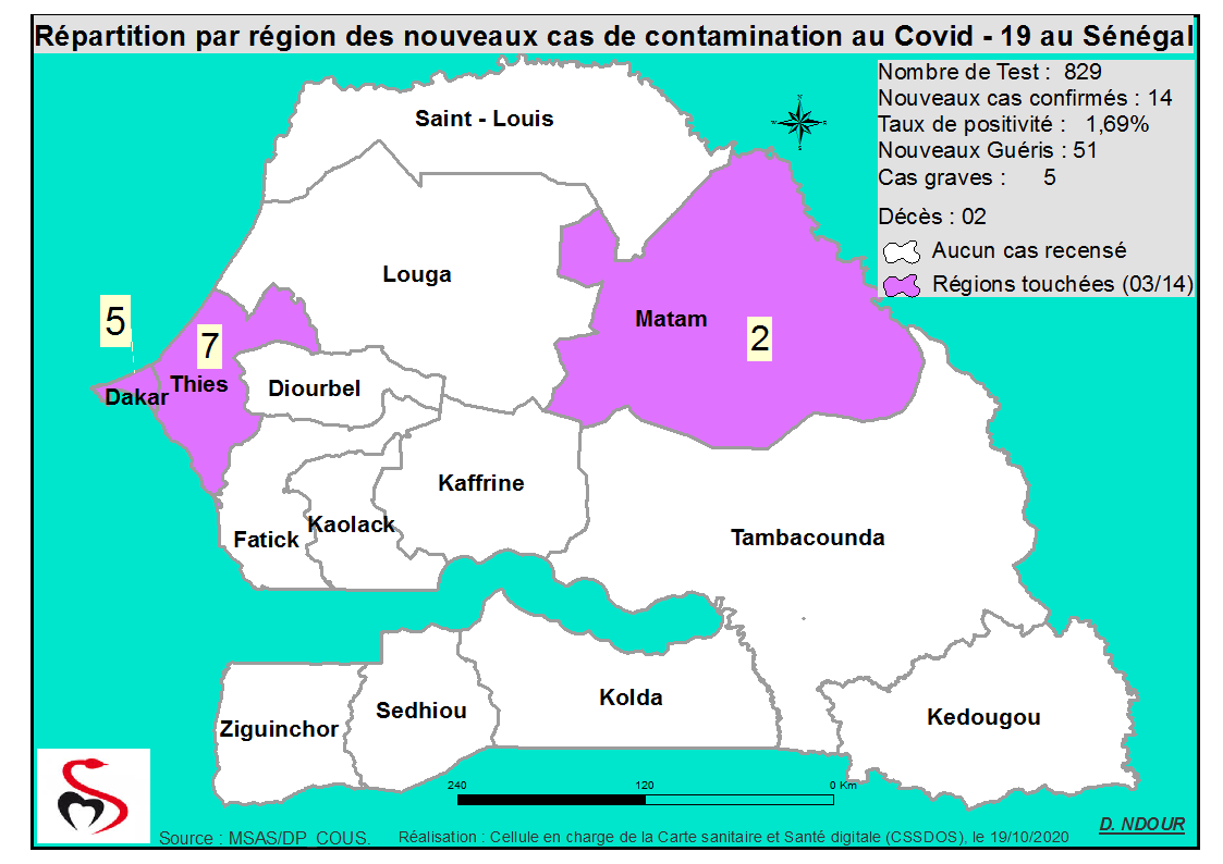 Coronavirus : Répartition par Région et District des cas de contamination à la Covid-19 au Sénégal du 19 Octobre 2020