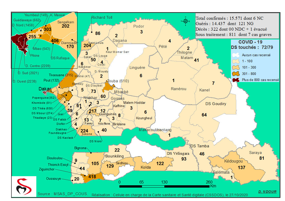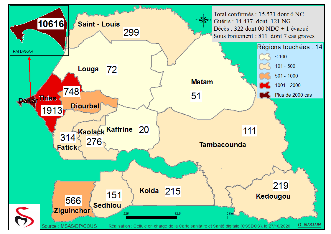 Coronavirus : Répartition par Région et District des cas de contamination à la Covid-19 au Sénégal du 27 Octobre 2020