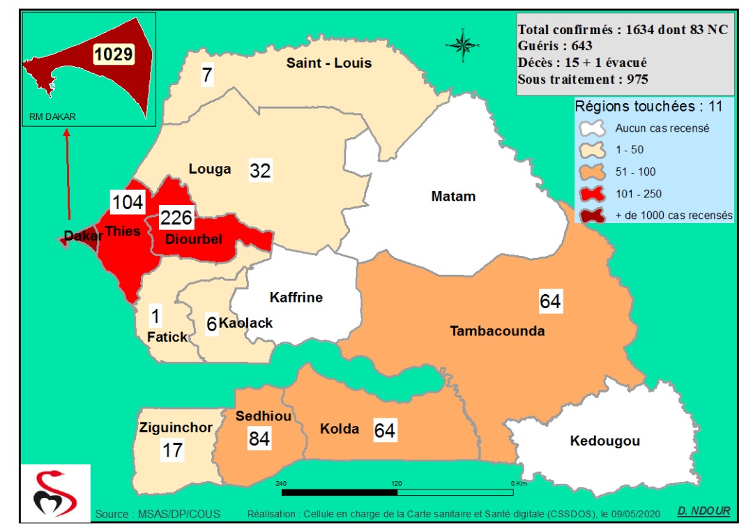 Coronavirus : Répartition par Région et District des nouveux cas de contamination au Covid-19 au Sénégal