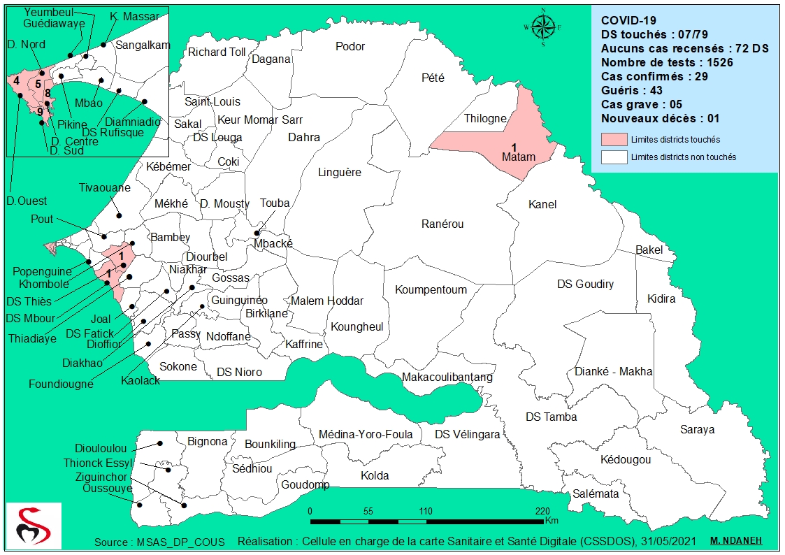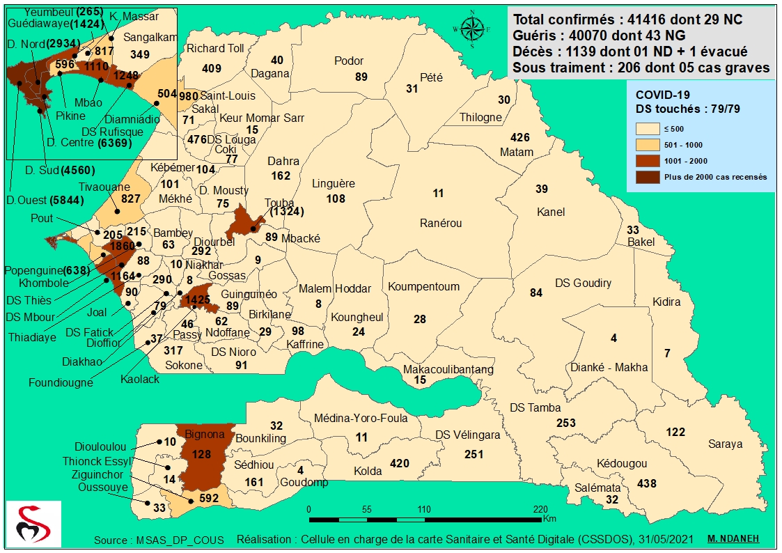 Accueil / Mediathèque / Phototheques / Coronavirus : Repartition par Région et District des cas de contamination à la Covid-19 au Sénégal du Lundi 31 Mai 2021