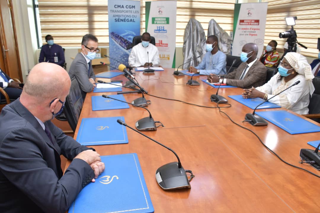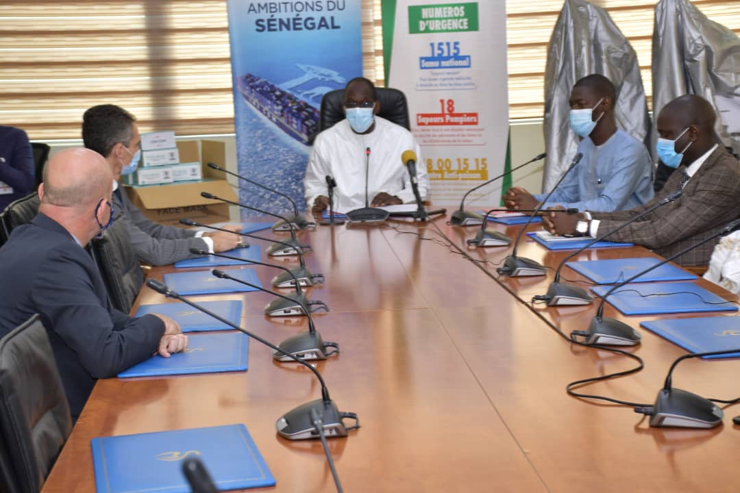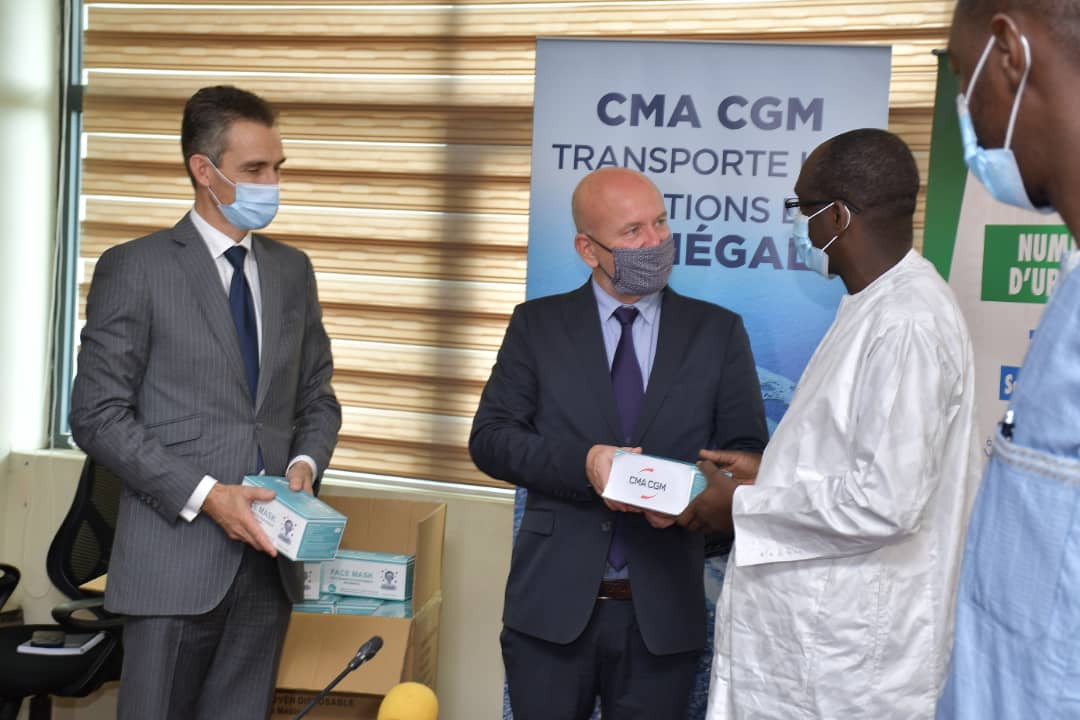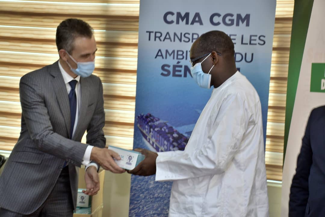 Accueil / Mediathèque / Phototheques / Le groupe CMA-CGA présent au Sénégal à travers l'ambassade de France au Sénégal et le PNUD ont remis un lot de 100 000 masques et 25 respirateurs plus 100 pulsomètres pour soutenir le plan de contingence du MSAS pour lutter contre la Covid-19