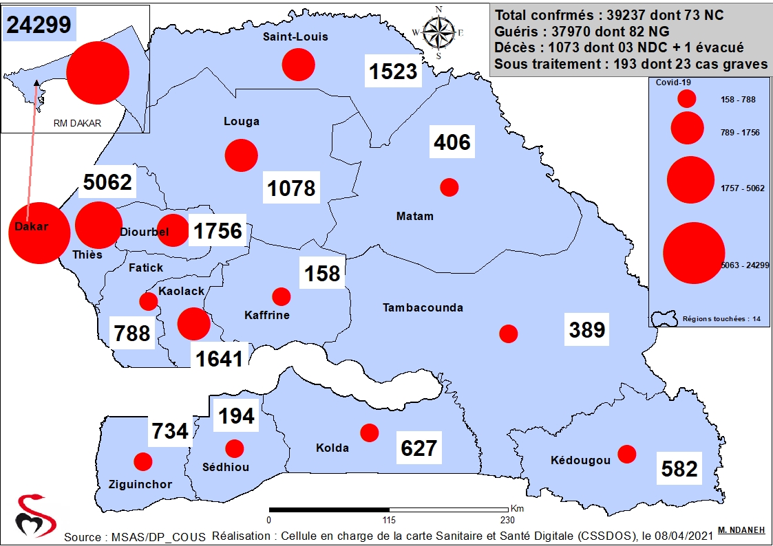 Coronavirus : Répartition par Région et District des cas de contamination à la...