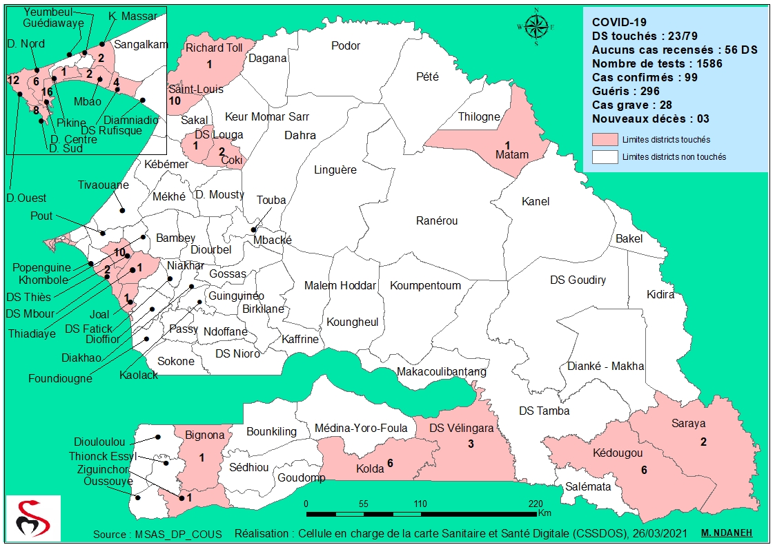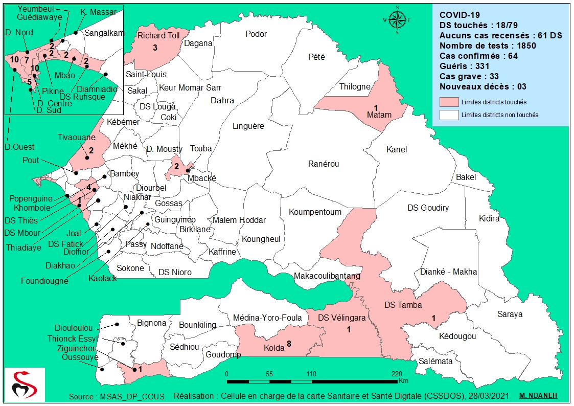 Coronavirus : Répartition par Région et District des cas de contamination à la...