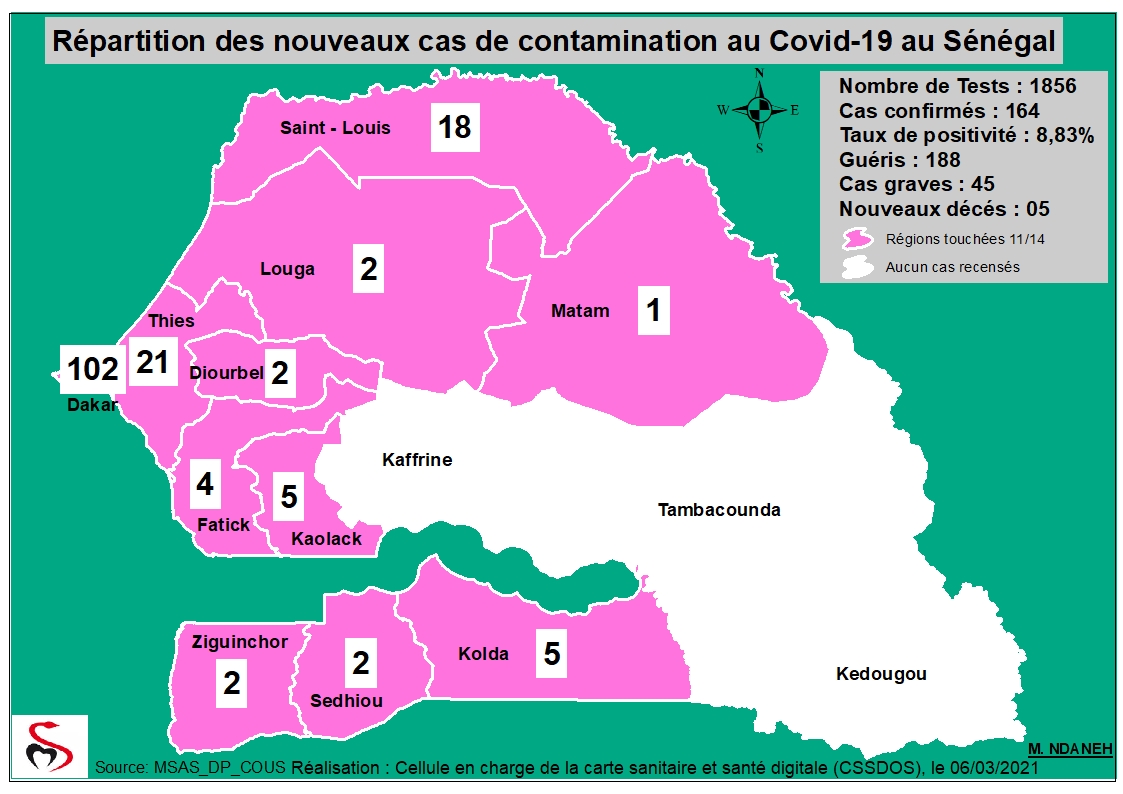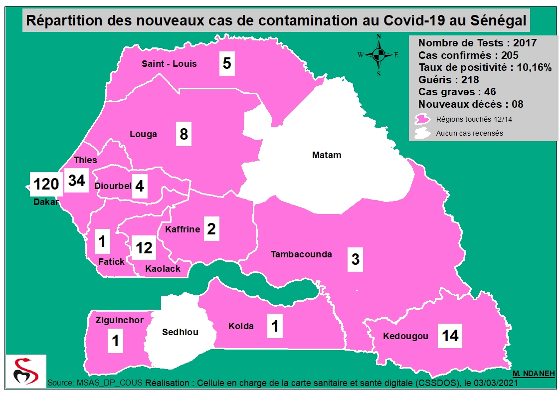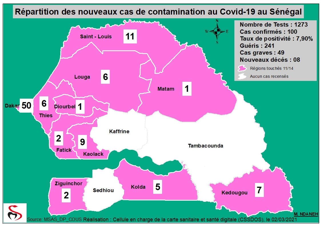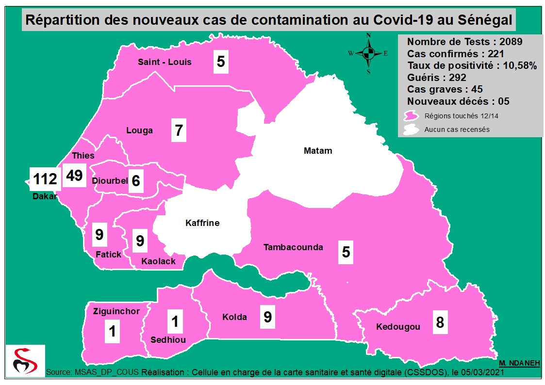 Coronavirus : Répartition par Région et District des cas de contamination à la...