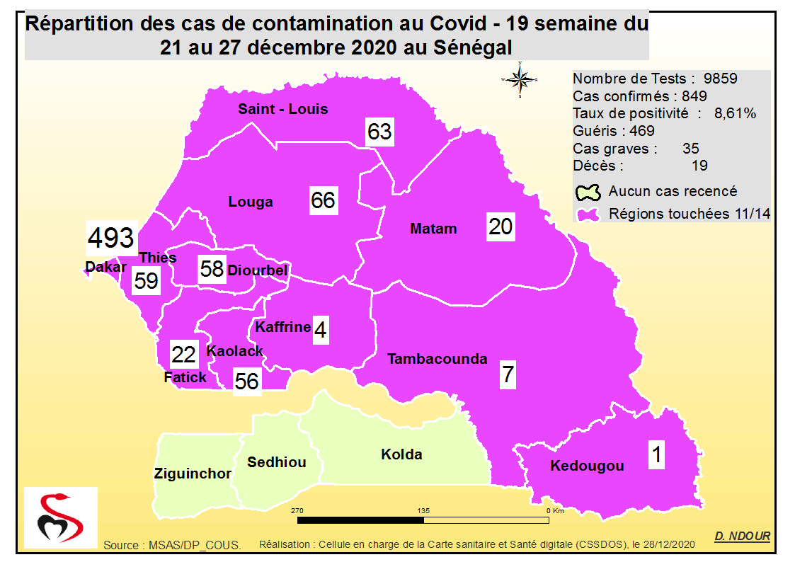 Coronavirus : Répartition par Région et District des cas de contamination à la...