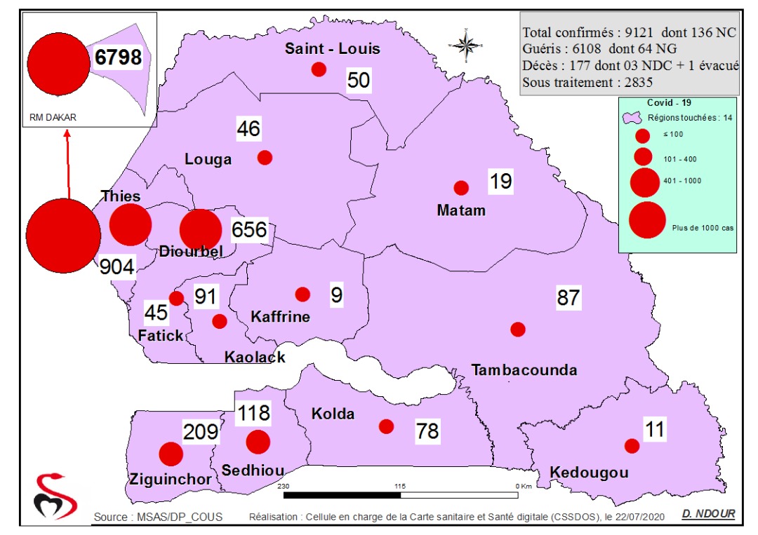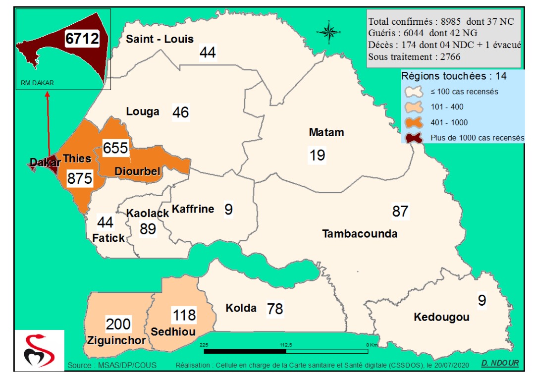 Coronavirus : Répartition par Région et District des cas de contamination à la...