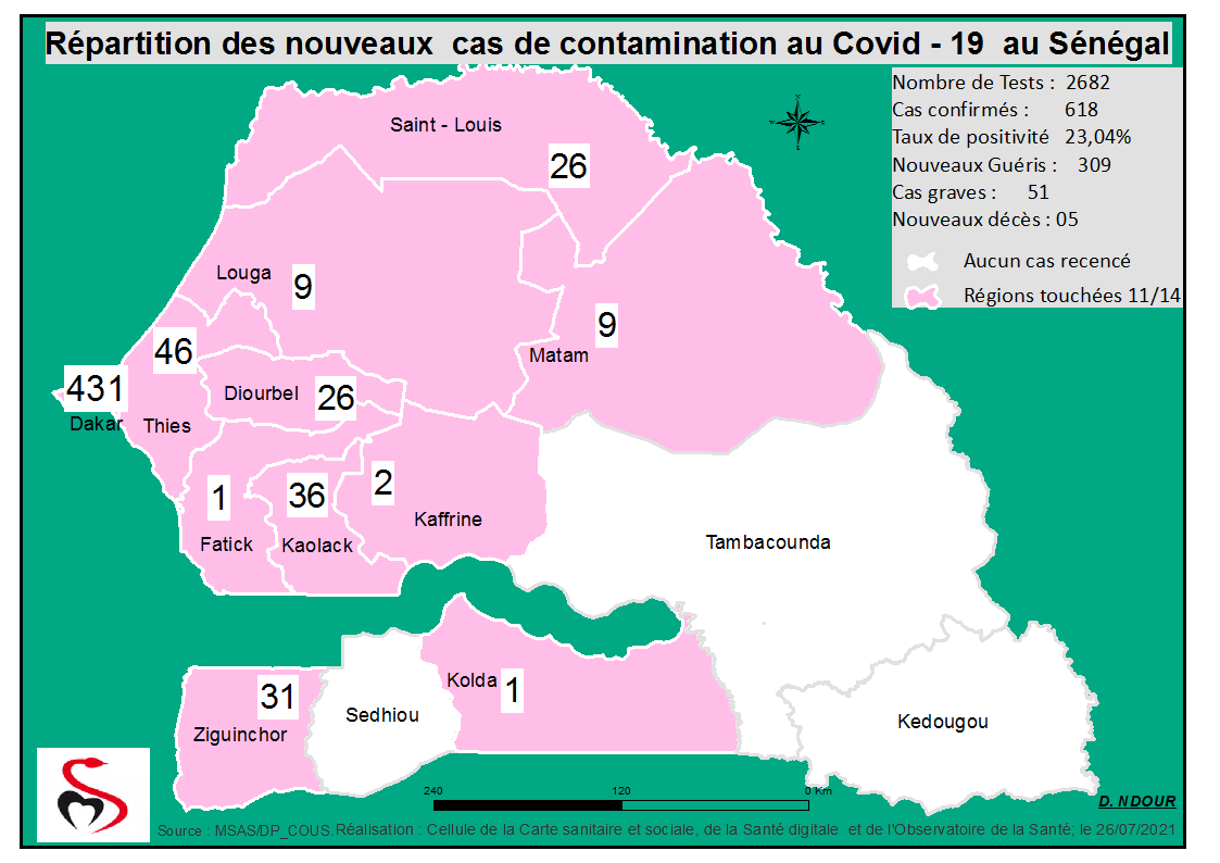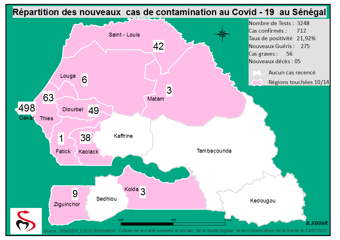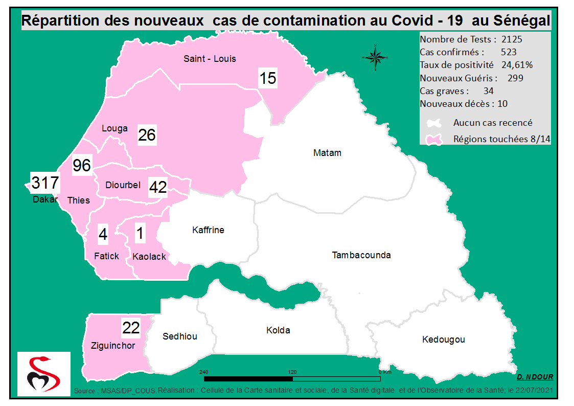 Coronavirus: Répartition par Région et District des cas de contamination à la...