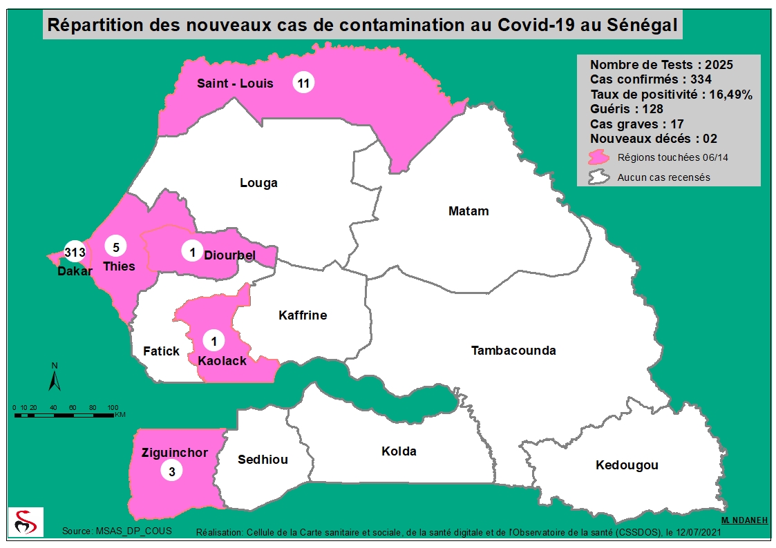 Coronavirus: Répartition par Région et District des cas de contamination à la...